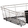 The Stainless Steel 2-Piece Dish Drainer from Better Houseware holds up to 8 dinner plates and has a side rack to hold cups/mugs. The set includes a cutlery holder that conveniently snaps on to the 2-Piece Dish Drainer to hold silverware. The coated steel on the bottom portion and feet protect the dishes and help resist rust.
