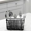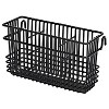 Better Houseware's large Black Cutlery Holder is designed to hook onto a dish rack and accommodates most of their dish racks. It may also be hung from a wall grid. This 3-section chrome cutlery holder is sturdy.
