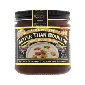 Original Better Than Bouillon Mushroom Base is made with mushrooms. This gives it a richer, more robust flavor than ordinary bouillons or soup stocks. Better Than Bouillon blendable bases easily spoon right out of the jar and let you add as much, or as little, flavor as desired. From marinades, glazes and vegetables to soups, sides and slow cooker dishes, Better Than Bouillon Mushroom Base adds flavor to all your favorite dishes. Basic Stock Directions: Dissolve 1 teaspoon Mushroom Base in 8 oz. boiling water. For each quart of stock needed, use 1 1/2 tablespoons Mushroom Base. Only 1 tsp. Better Than Bouillon = One Cube or 8 Oz. Can broth. For best results, refrigerate after opening. There’s nothing better than big flavors and cooked-all-day taste in your favorite meals. Well, except maybe getting that taste without actually taking all day. That’s where Better Than Bouillon comes in. We’re a paste, a base, a flavor enhancer, a kitchen shortcut, a secret seasoning and pretty much whatever you want us to be. We don’t really like labels – except the ones on our jar. Unlike blocks or cubes, Better Than Bouillon makes it easy to add just the right amount of flavor to your dish. We use only premium ingredients across a full range of bases, so you can get creative with soups, pasta, rice, meats, vegetables and more. Find your favorite flavor today – and no matter what you’re making, make it better.
