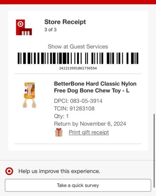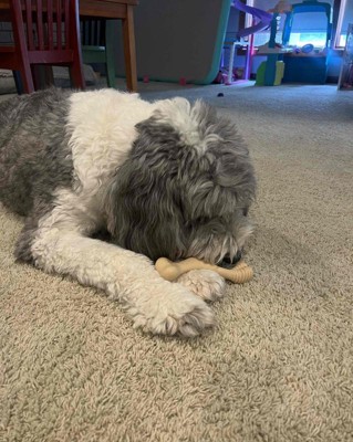 [This review was collected as part of a promotion.] My standard poodle loves to chew on everything, and the Better Bone chew toy was a big hit! It is refreshing to find a durable chew toy that is nylon free, which gives me peace of mind about her safety. She has spent several hours chewing it today and it's sturdy enough to withstand her mighty teeth. I highly recommend this for dogs that like to chew and need something durable! Ensure you select the appropriate size for your pet. We purchased the size large. I received an incentive to write this review.