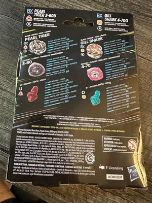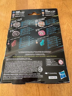 - STRATEGIZE YOUR BATTLES: The Gill Shark 4-70O top has an O bit that reduces friction to improve endurance and a blade designed to dodge attacks. The Pearl Tiger 3-60U top combines attack, defense, and endurace to go up against any opponent