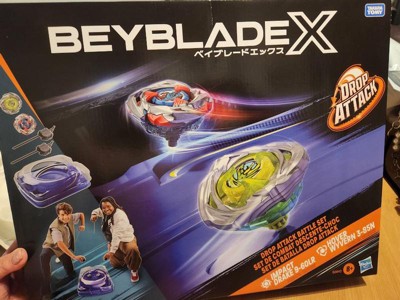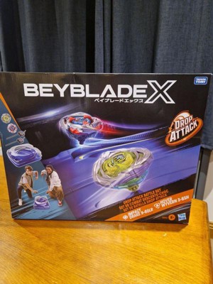 - BATTLE OUT OF THE BOX: Beyblade X Drop Attack Battle Set includes everything kids need to play and compete: Beystadium, 2 right-spinning tops, and 2 ripcord launchers. Assemble the stadium and tops, load your launcher, and 3-2-1 Let it rip!