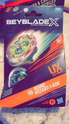 - INTERCHANGEABLE DIE-CAST BLADES: Includes Takara Tomy-designed Beyblade X launcher and top with authentic die-cast metal parts: Wand Wizard 1-60R UX Right-Spin Attack Type with a Stamina Type Blade. Strong centrifugal force combines with swift dash attacks