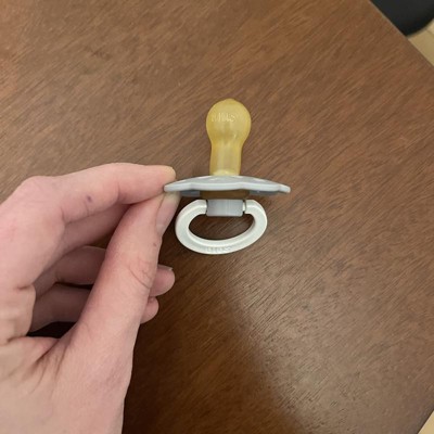 [This review was collected as part of a promotion.] My daughter loves these pacifiers! The bulb shape makes it easy for her to keep them in her mouth without falling out. I love that they are made of natural rubber for a less toxic choice. The glow in the dark feature is so helpful at night to be able to quickly find them! These particular ones are such a cute color and I love the cut out design! The size is longer for 6 months plus which is nice. High recommend! I received an incentive to write this review.
