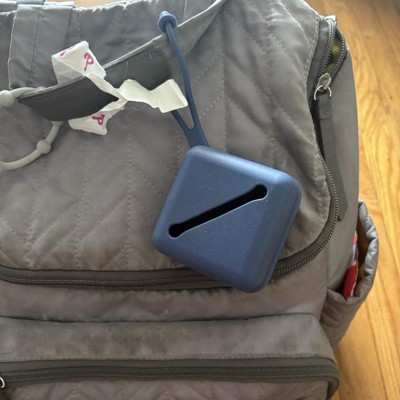 [This review was collected as part of a promotion.] This thing is genius! I love that I can store two pacifers at once and it easily can hang off our diaper bag. The silicone material makes for easy cleaning and I can wipe off any dirt with a wet paper towel. The blue color makes it perfect for my baby boy and goes perfectly with his diaper bag. We have several things from the Bibs brand and we love them all! Must buy for a diaper bag and easy storage! I received an incentive to write this review.