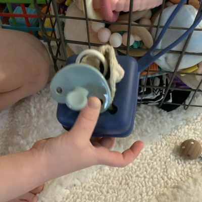 [This review was collected as part of a promotion.] This pacifier holder is a generous size with lots of room for many brands and sizes of pacifiers. The silicone material is soft to the touch and squeezable to insert and remove your baby’s pacifier. The blue color I chose is deep and such a lovely shade. It’s a wonderful addition to our diaper bag and will match many other of the Bibs item lineup. Would buy again if needed! I received an incentive to write this review.