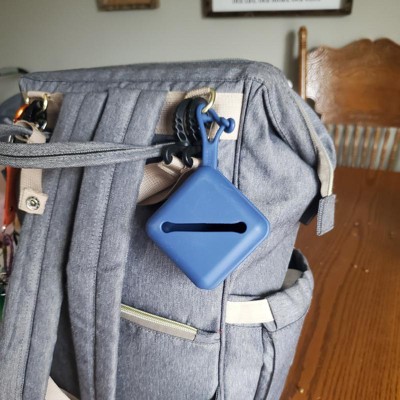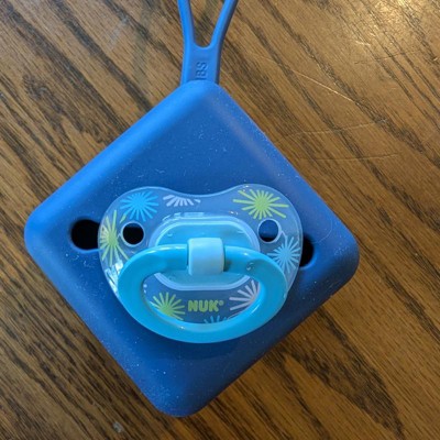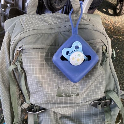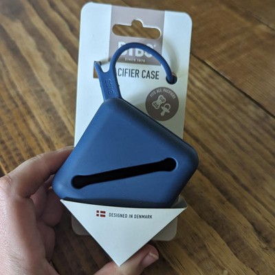 [This review was collected as part of a promotion.] This blue silicone pacifier case is great for running errands and general every day use. We have utilized it by attaching it to our infants toy bin, backpack, and various other places as we move throughout our day. The slot where the pacifier clip is stored is ease to use and is able to hold multiple clips at once. Additionally the case’s ball and hook clasp (how the case attached to other objects) is very simple, durable, and will not easily come undone without significant effort in pulling the ball out of the hook. I received an incentive to write this review.