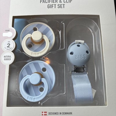 [This review was collected as part of a promotion.] This is such a cute baby gift set. Make sure to check the sizing though. This one is a size 2 and is intended for babies over 6 months of age. It is a thoughtful gift, but it would be good to check what the new parents need first. The pacifiers are very lightweight but don't seem easy to break. The blue color is really pretty. I like the quality of the pacifier clip that comes along with it. It is sturdy I received an incentive to write this review.