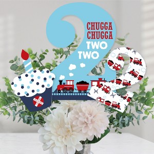 Big Dot of Happiness 2nd Birthday Railroad Party Crossing - Steam Train Second Birthday Party Centerpiece Sticks - Table Toppers - Set of 15