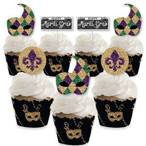 Big Dot of Happiness Mardi Gras - Cupcake Decoration - Masquerade Party Cupcake Wrappers and Treat Picks Kit - Set of 24