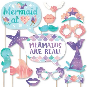 Big Dot of Happiness Mermaid Photo Booth Props Kit, Under the Sea Mermaid Birthday Party Supplies - 20 Count Selfie Prop Sticks