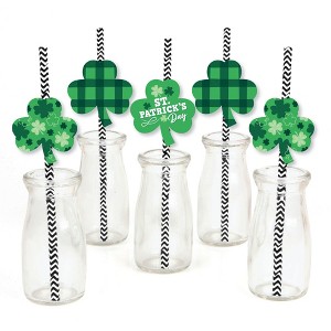 Big Dot of Happiness Shamrock St. Patrick's Day - Paper Straw Decor - Saint Paddy's Day Party Striped Decorative Straws - Set of 24