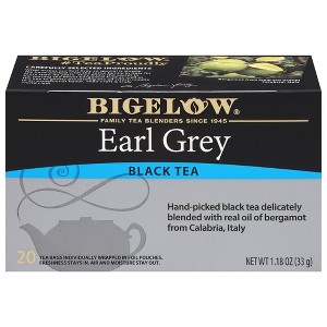 Earl Grey Black Tea is Caffeinated, Gluten-free, Non-GMO and Kosher Parve. This delicious black tea is perfect hot or over ice. For hot tea start with cold water and bring to a rolling boil. Pour over tea bag, steep 2-4 minutes and remove tea bag. For iced tea steep a little longer and pour over ice. Bigelow Tea is proud to be a Certified B Corporation meeting the highest verified standards of social and environmental performance, transparency, and accountability.