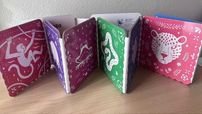 Love the vibrant colors & animals you don't usually see in kids books. The images are beautiful the book is am accordion style and so pages are double sided. Highly recommend this to everyone.