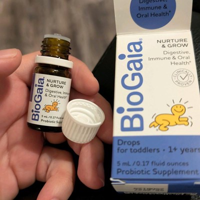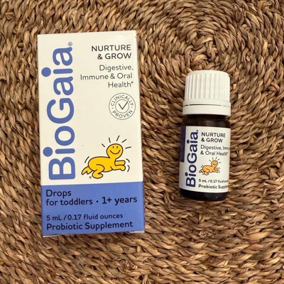 That's specifically why we've developed BioGaia Nurture & Grow Toddler probiotic drops. A 3-in-1 probiotic that supports digestive health, immune health, and oral health for growing tots.* Just 5 drops once daily works naturally in their digestive system to promote regularity and ease occasional tummy issues, such as constipation, gas, and diarrhea.* Additionally, daily use supports immune health while promoting healthy gums & teeth too!*