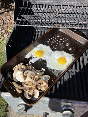 This griddle is a versatile addition for both indoor and outdoor cooking, offering a sturdy design that performs well on various heat sources. Guests appreciate its heavy-duty construction and the ability to cook multiple items simultaneously, making it ideal for family meals or camping trips. While some have noted the rough cooking surface requires seasoning, many find it enhances the cooking experience once properly prepared. Overall, it is a reliable tool for any cooking enthusiast.