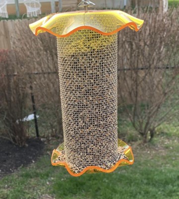 [This review was collected as part of a promotion.] One of our favorite backyard activities is watching the birds & squirrels at the various feeders that we put out for them. I wanted this Small Nyjer Seed Feeder so that the smaller birds would have a place to get seed without the larger birds scaring them away. This cute little feeder has a bright yellow top & bottom with a stainless steel feed tube. It is easy to fill by pinching the clasp to move the top to the side. Then just fill it with seed, secure the top again & hang it by the wire that is attached. We first hung this feeder on the pole with some other feeders but the larger birds tried to use it but were really just swinging it around because they were too big. We now have it hanging under the eave of the house outside of our kitchen window so that we can get a close-up look at the smaller birds that use this feeder regularly. Our small bird friends seem to love this feeder.