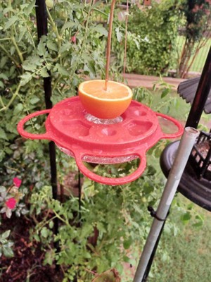 [This review was collected as part of a promotion.] Our backyard is a haven for flying critters and this feeder is a nice addition to attract yet another group of winged visitors. I like the idea of the orange half in the center of the feeder since it adds balance to stabilize the feeder. It is versatile since it is designed to hold a half of an orange, plus jelly plus the nectar. Insects are always a problem with anything we put out and this feeder is no exception. It does attract its share of bees but it’s ok to share. I’m actually thinking abut getting a second one so that once can be in the cleaning, maintenance mode while the other is outside doing it job. Setting it up does take a few minutes but it is more than worth it. Recommended.