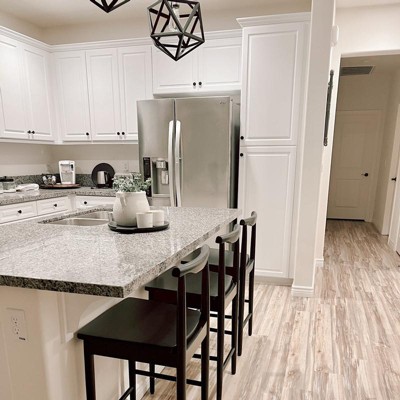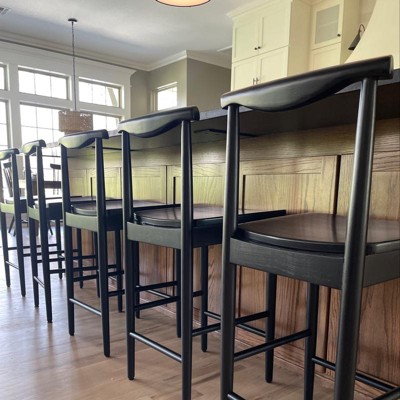 Add classical allure to your eat-in kitchen or bar area with this Biscoe Value Wood Counter Height Barstool from Threshold™. Made with a natural-finish rubberwood frame, this counter-height stool features a spacious seat and open raised backrest, along with an in-built footrest for comfort as you enjoy an informal happy hour or quick meal. You can place this barstool anywhere from your kitchen to your den — wherever you use it, you'll appreciate the refined comfort you've added to your home.