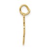 Show off your winning personality with this flat money bag charm fashioned from polished and textured 14k yellow gold. It measures approximately 8mm (5/16 Inch) in width by 16mm (5/8 Inch) in length, which does not include the jump ring. Made in the U.S.A. Chain not included. Additional features include: crafted from solid 14 karat yellow gold; polished and textured, flat design; approximate size is 8 x 16mm; average weight is 0.61 grams.