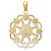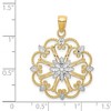 • Unique Features - Tie the meaning to the moment with a classic or unusual pendant that makes it personal, thoughtful, or meaningful. This two-tone filigree pendant crafted in 14k yellow gold with white rhodium plating features a textured and diamond-cut starburst heart design. The approximate size is 25mm (1 inch) in width by 31mm (1 1/4 inch) in length with the bail. This item does not include a chain.
