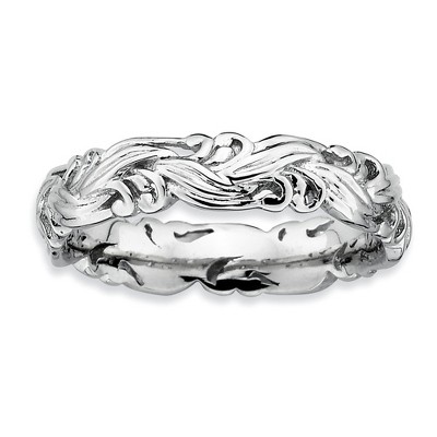 • Unique Features - Make it simple and stylish with bands of different textures, finishes, widths and colors! This rhodium plated sterling silver band features a wheat design with a high polished finish that measures 4. Mm wide. Guaranteed to fit together perfectly with all of the mix and match Stackable Expressions rings.