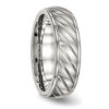 Black Bow Jewelry 7mm Stainless Steel Brushed Diagonal Grooved Ridged Edge Band - 1 of 4