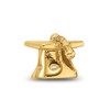 Mark the special occasions in your life with one of our many inspiring theme charms specifically designed to tell your personal story. This graduation cap charm is approximately 11 x 10mm with a 4mm center bead opening and is fashioned from sterling silver plated with 2 microns of 14k yellow gold. It is also interchangeable as well as compatible with Reflections and other popular 3mm width bead style bracelets and necklaces. Additional features include: sterling silver plated with 2 microns of 14k gold; approximate size 11 x 10mm; bead hole measures 4mm in diameter; fits most 3mm bead bracelets and necklaces.