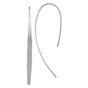 A long, lean and glamourous design created from tarnish resistant, rhodium plated sterling silver. This threader style dangle earring is approximately 3.5mm (1/8 inch) in width by 55mm (2 1/8 inch) in length. Additional features include: tarnish resistant, rhodium plated sterling silver design; brushed and polished finish; approximate size is 3.5 x 55mm; weight is approximately 2.08 grams.