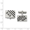 - Unique Features - Personal and stylish, featuring black enameled diagonal stripes and DAD inscription. These polished stainless steel cuff links are approximately 14mm (9/16 inch) in width by 20mm (3/4 inch) in length.