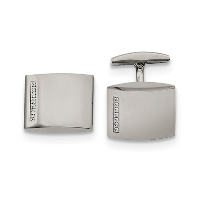 Black Bow Jewelry Men's Titanium & CZ Brushed & Polished Convex Rectangular Cuff Links