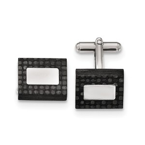 Black Bow Jewelry Men's Stainless Steel & Black Carbon Fiber Rectangular Cuff Links