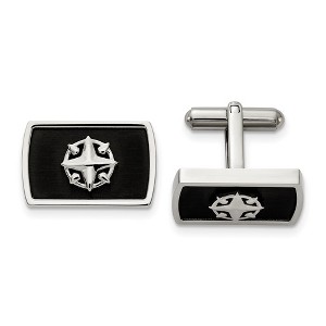 Black Bow Jewelry Stainless Steel & Black Plated North Star Compass Cuff Links, 22x14mm