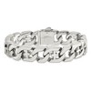 A unique and compelling design fashioned from polished 316L stainless steel, an attractive alternative metal that is highly resistant to pitting, corrosion and does not oxidize or tarnish. This curb link and cross bracelet closes with a box catch and is approximately 14mm (9/16 inch) in width by 8.5 inches in length. Additional features include: polished stainless steel design; closes with a box catch; approximate size 14mm x 8.5 inches; weight is approximately 76.43 grams.