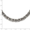 An intricate weave of polished stainless steel links form a wonderful ornate style chain that will give any outfit a sophisticated touch. This 7mm width fancy byzantine chain closes with a durable lobster-claw clasp. Additional features include: crafted with stainless steel; 7 mm in width; byzantine style chain; closes with a lobster claw clasp.