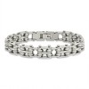 Crafted with 316L stainless steel, a metal designed to look new even through long and steady use. Has a polished finish and includes a fold over locking clasp. 8.5 inches in length. 9 mm in width. Additional features include: crafted with 316l stainless steel; high polished finish; measures 8.5 inches long by 9mm wide; weight is approximately 49.31 grams.
