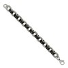 Express your bold attitude with a chunky chain that offers substance and style! This rugged stainless steel chain features textured polished links connected with smooth black rubber rings. It measures approximately 13mm wide by 9 inches long including the fancy lobster clasp. Additional features include: textured & polished 316l stainless steel; smooth black rubber accent links; measures 13mm wide by 9 inches long; weight is approximately 48.15 grams.