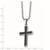 Black Bow Jewelry Men's Stainless Steel & Blk Carbon Fiber Inlay Cross Necklace, 22 Inch