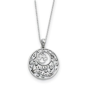 Take a reminder of your furry friend with you wherever you go with this 1-inch pendant necklace crafted from rhodium plated sterling silver with antiqued lettering. It includes an 18-inch cable chain that closes with a spring ring clasp and a card with the follow inspirational poem written by the artist printed in English and Spanish. Animal Friends: Animals give the best of love. Have you felt this love before? Each day that you are with them... They give love even more. It is good that we protect them and keep them safe from harm. Show them just how much you care. Hold them in your arms. By having an animal around-shape you, there is much that we can learn. The love that you have given them, is the love that is returned. Additional features include: rhodium plated sterling silver design; approximate pendant size 26 x 35mm (1 x 1 3/8 inch); includes artist poem card printed in english & spanish; average item weight is 5.0 grams.