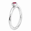 Unique Features - Created Ruby, July's birthstone is known as the stone of spiritual wisdom, health and knowledge bringing contentment and peace. This 2.5mm band fashioned from rhodium plated sterling silver is bezel set in a low profile mounting with a 4mm round gemstone that will add vibrant color to your finger. Created rubies like their natural counterparts can range from pink to deep red so please allow for variations in color. Guaranteed to fit together perf...See description for more
