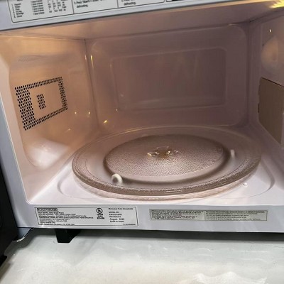 A: Hello TLLBLND. Thank you for your inquiry about our BLACK+DECKER 0.7 cu. ft. Microwave (Black). The unit can fit dishes up to approximately 10 inches in diameter. Have a great day!