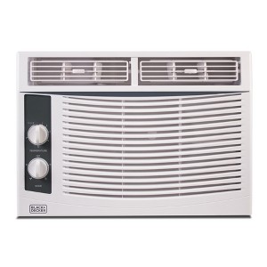 The BLACK+DECKER 5,000 BTU Window Air Conditioner offers a cooling solution designed for optimum comfort and efficiency. This window mounted AC is a perfect addition to your home, offering a powerful cooling capacity that can efficiently cool rooms up to 150 square feet. With an 11 CEER rating, this air conditioner is engineered for energy efficiency and sustainability, utilizing R-32 refrigerant to minimize environmental impact. The Black and Decker window air conditioner utilizes simple mechanical control operation to easily adjust your settings. This window AC unit features two cooling and two fan speeds along with a temperature control dial with 7 temperature settings that can be adjusted to suit your preferences. Installation is made simple with the included hardware and installation kit, accommodating windows that measure 23 to 34 inches in width and as low as 14.5 inches in height. The side accordion panels ensure a snug fit, minimizing air leaks and maximizing efficiency. The removable and washable filter simplifies maintenance, ensuring your air conditioner window unit remains in optimal working condition. In fan-only mode, you can enjoy a gentle breeze without the cooling effect. 115V, 60Hz, 4.5A. UL listed.