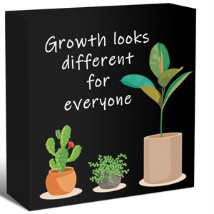 Black Inspirational Wood Block Sign,Growth Looks Different for Everyone Plant Motivational Wooden Block Sign