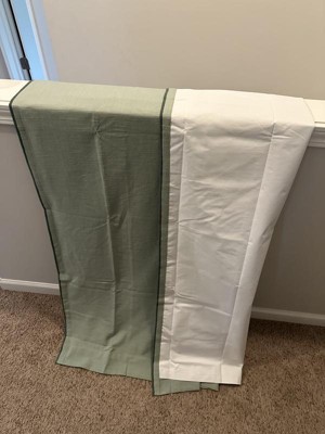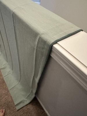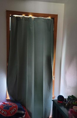 This is a well made beautiful linen curtain. I love the color and it matches much of my decor throughout the house; it’s a popular gender neutral color. There is a darker green border which is a nice touch. From the outside of the window, you see the white lining and it looks nice. Currently, I only have one panel so my images do not show the curtain set up in a window. However, I agree the curtain blocks out sunlight very well.