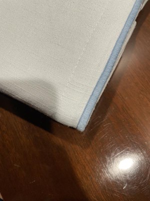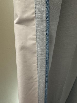 Beautiful finish on the trim with dark blue thread to contrast the light blue shade of the curtain . The curtain has good lining and blocks the sun well and darken the room. It has brushed cotton type of feel to the fabric so gives a casual look in the room
