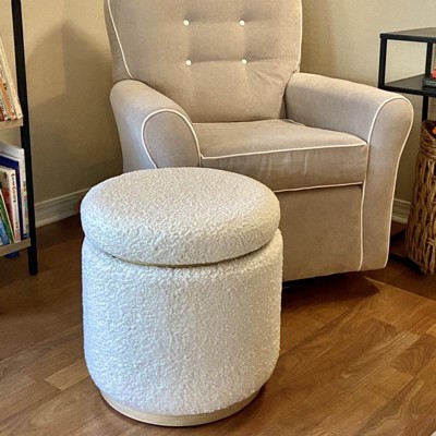 [This review was collected as part of a promotion.] This Sherpa Storage Round Ottoman is so pretty and so perfect. The size is great. Fits perfectly in my room. The color is pretty, it’s not white, is kinda a light beige, and fits with everything. The material is really good and has a great quality. I recommend it for sure.