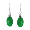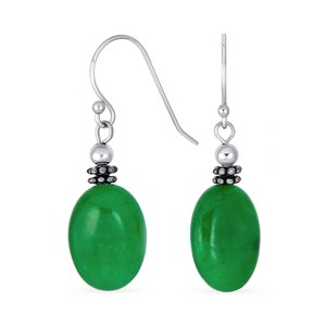 Bling Jewelry Bali Style Green Natural Jade Milgrain Oval Drop Earrings Sterling Silver Oxidized Wire Fish Hook Color - Green