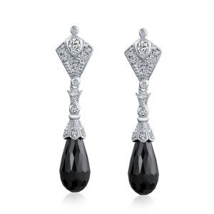 Bling Jewelry Deco Style Black Teardrop Faceted Briolette Cubic Zirconia Pave CZ Prom Evening Dangle Earrings Sterling Silver Color - Black