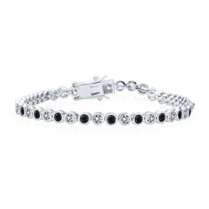 Bling Jewelry Formal Holiday Party 10CT Black White Alternating Cubic Zirconia Bubble Circle Bezel Solitaire CZ Tennis Bracelet Sterling Silver 7 Inch