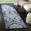 Our runner features a captivating pattern, reminiscent of traditional motifs with a contemporary twist. Its intricate floral and botanical designs grace the navy base with ivory highlights, creating an enchanting and inviting atmosphere. Each design element has been thoughtfully placed to accentuate the beauty and craftsmanship of this piece. The high-quality wool construction ensures durability, natural resistance to stains, and an inherent capacity to retain its shape and color over time.